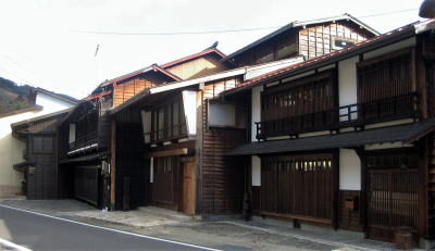 湾曲する街道の道なりに合わせて、町屋の並び方は、横から見た階段のような形状になっています。通りに面する壁面はほぼ平行になっているのです。