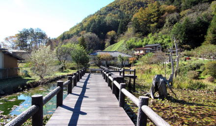 昭和期まで、徳音寺の西側の谷間を流れ下る沢から水路を引いてここに水田を開拓したのでしょう。さらに古い時代には、城館の庭園の一部または軍事的防衛用の池あるいは濠があって、義仲館の辺りも低湿地または湿田だったのではないでしょうか。