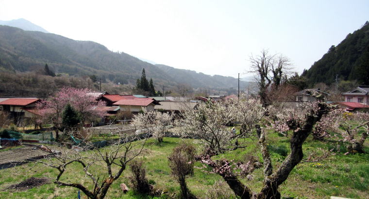 徳音寺集落のなかで家並みと呼べるほどに家々が軒を連ねているのは、木曾川河岸を往く旧中山道沿いです。 そういう旧街道のの背後(西側)の丘陵には家がまばらにしかありません。しかし、江戸時代初期までは、禅宗寺院を中心とした街集落があったものと見られます。 ![]() ▲葵橋の北側を往く小径が旧中山道跡だという ![]() ▲旧街道の両側は畑と草地だが、かつては家並みがあったか ![]() ▲古い造りの家屋だが無住で荒廃している ![]() ▲鎌倉時代には山裾に堂塔伽藍が並んでいたかもしれない ![]() ▲家屋の跡や田畑の跡は花畑になっている ![]() ▲この辺りは寺院の門前に家並みがあったのかもしれない ![]() ▲梅園の農道はかつては寺への参道だったか ![]() ▲沢を南に越えた丘は寺院跡らしく、今は墓地となっている ![]() ▲往古、この丘が寺院の境内だったらしい |