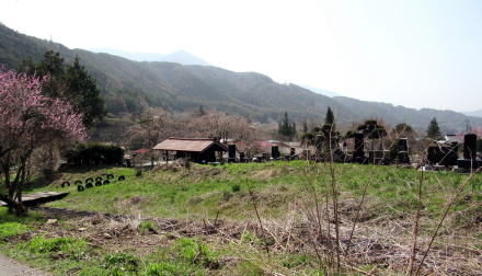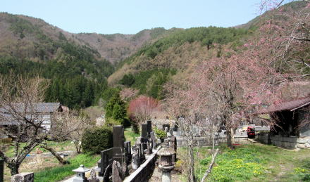 ![]() 古い寺院の跡らしい墓地の一隅から徳音寺の集落を見渡す |