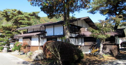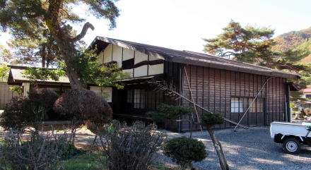 ◆信州の中山道では3棟だけ現存◆ 信州の旧中山道ではの宿場で、往時の本陣の建物で現在に残っているものはきわめて稀で貴重な文化財といえます。本陣の建物が残っているのは、宮ノ越宿の本陣客殿棟、和田宿の本陣の主屋居住棟、下ノ諏訪宿の本陣岩波の御殿棟のわずかに3棟だけです。 ◆宮ノ越本陣の建物◆ 宮ノ越では宿駅の本陣職は村上家――投手は弥右衛門を襲名――が代々歴任し、宿駅の問屋場も兼ねていました。火災による焼失をかろうじて免れた客殿は残されましたが、その後住宅および事業用建物として改修され、村上家がこの地から転出すると荒廃していきました。 ◆広大な屋敷林・庭園◆ 明治時代の宮ノ越宿の姿を写したと見られる写真では、本陣の辺りに広大な屋敷林があったことがわかります。 |