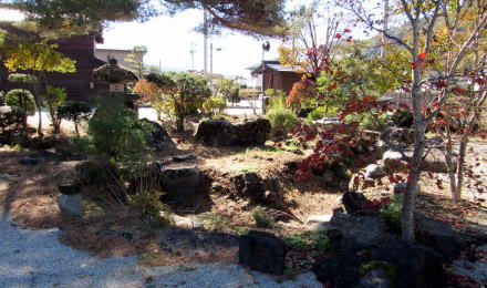 ![]() ▲御殿(客殿)の表門(薬医門形式)。一般の人は通れなかった。 ![]() ▲御殿の玄関側はこうなっている ![]() ▲御殿玄関脇から主屋跡を眺める ![]() ▲北東から見た御殿の様子。窓はもう2つくらいあったか。 ![]() ▲南側からの御殿の様子 ![]() ▲本殿の背後には広大な庭園樹林があった ![]() ▲玄関前、池のある和風庭園があったらしい ![]() ▲主屋側の通用門は跡形もない。池と水車小屋だけがある。 江戸時代には街道のこちら側には、宿場用水と池、前庭の植栽からなる幅1間くらいの緑地帯が中町まで続いていたようだ。 |