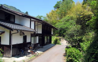 今は茶屋はなく、跡地に小洒落た出梁造りの住宅が建っています。古民家を修築したのか、改築したのか、低い屋根シルエットと漆喰白壁がすっきりしていて伝統的な和風建築の美しさが印象的です。