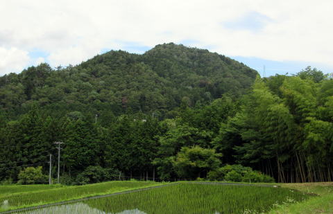 ▲三留野東山砦の西麓から愛宕山を眺める。山頂に城跡がある。