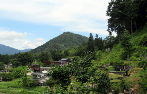 ▲中山道与川道から愛宕山南の尾根を見上げる。左奥が山頂。