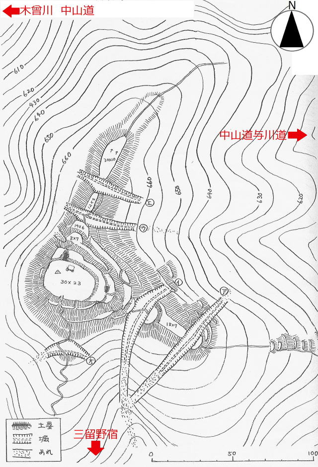 出典:宮坂武男『縄張図・断面図・鳥観図で見る 信濃の山城と館』第7巻(2012年刊)