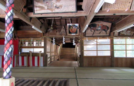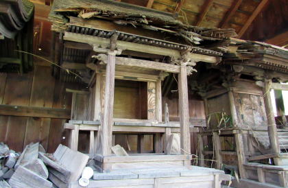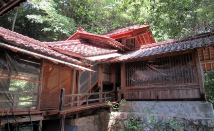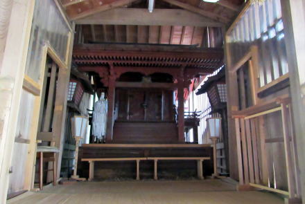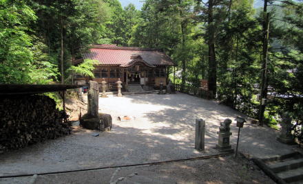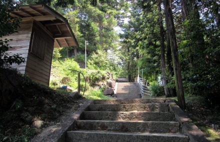 ![]() ▲神社参道入り口の石塔の背後に秋葉社の蓋殿がある ![]() ▲蓋殿のなかには朽ちかけた古い秋葉社の本殿がある ![]() ▲大鳥居の下で背後(西)を振り返ると伊勢山の稜線が見える ![]() ▲石段脇には石神(石塔)群が立つ。刻文字は判読できなかった。 ![]() ▲ひたすら石段を登り続ける ![]() ▲段丘の突端上には山神社と不動明王尊が並ぶ ![]() ▲山神社と不動明王尊は林道脇の杉木立の下に並ぶ ![]() ▲境内最上段の奥に控える拝殿(奥の蓋殿内に本殿がある) ![]() ▲拝殿裏手から本殿にのぼる渡りと蓋殿 ![]() ▲拝殿内陣奥の渡り、その奥に本殿がある ![]() ▲これが本殿。じつに端正な造りだ。 ![]() ▲拝殿の内部の様子。内陣奥の渡の向こうに本殿が安置。 ![]() ▲参拝後の帰り道、石段の降り口はこうなっている 東山の南麓を梨子沢が流れている。南木曽岳の支脈尾根南麓から東山南麓にいたる深い谷間は、梨子沢とその支流が何十万年もかけて浸食して形成したと見られる。そして。三留野宿から和合にいたる木曾川東岸の扇状地は梨子沢の堆積作用によってつくられたものだろう。 東山神社の社殿の南側は傾斜のきつい崖のような急斜面だが、これも梨子沢が山麓から山腹を削ってもたらしたものだ。 |
