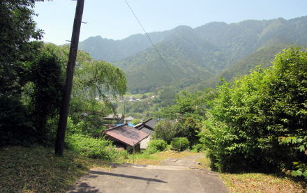 東山は、旧三留野村の東側に聳える南木曽岳(標高1677m)の山頂から北に延びる主稜線から木曾川に向かって西に張りだした尾根の先端に盛り上がって小さな峰です。尾根の突端にある半ば独立した小峰です。 |
