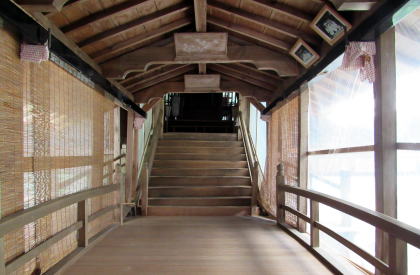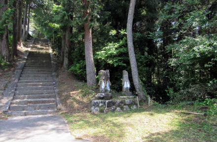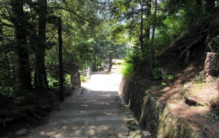![]() 等覚寺の境内を出て東山神社にのぼっていく石段と大鳥居 |