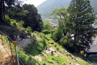 ■東山砦の縄張りを受け継ぐ神域■ 東山は、南木曽岳の稜線のうち西に延びる枝脈稜線の先端にある小さな峰です。その山頂には戦国時代、木曾氏の砦がありました。したがって、神社の参道や神域の造りは、かつての城砦の防衛機構を受け継いだ形になっています。
