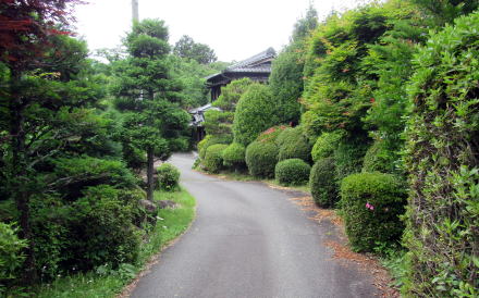 この集落の住民たちは、旧中山道歩きを楽しむ人々のために道沿いの前庭をじつに端正・丁寧に手入れしているようです。私たちは、あたかも和風庭園のなかの遊歩道を歩いているような気分になります。