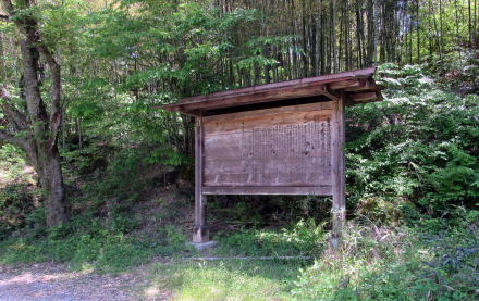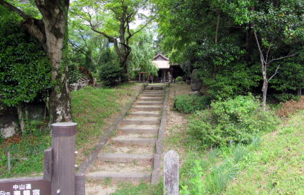 旧中山道の遊歩道は、兜観音の境内のなかを通るようになっています。中山道と「かぶと観音」を解説する案内板の右側に参道石段があって、参道で観音堂に参詣して、右に曲がって神明社を拝んでから、神戸の集落に向かうのです。
