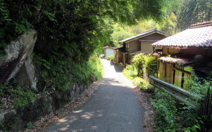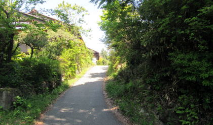 ![]() ▲上久保一里塚から30メートルほど北、民家の前から谷に下る ![]() ▲旧街道の西脇の段丘崖は竹林になっている ![]() ▲千沢橋の南袂にある重要伝統的建築物群保存地区の説明板 ![]() ▲谷底近くの千沢橋に降りていく小径(旧中山道) ![]() ▲千沢の谷間からのぼって直角に曲がり読書・神戸方面に向かう ![]() ▲読書の集落のまばらな家並みの脇を北東に進む ![]() ▲小さな橋を渡って沢を超える ![]() ▲読書集落の兜観音と神明社に向かって北東向きにのぼる坂道 目の前を横切る道は国道19号に連絡する ![]() ▲5本の道が出会う五差路。説明板の奥に兜観音がある。 ![]() ▲観音堂への緩やかな参道石段が中山道遺構の遊歩道だという ![]() ▲この道は旧中山道だが、まるで和風庭園のなかを往くようだ ![]() ▲実に端正に手入れされた庭木植栽 ![]() 家並みの先の草地に往時、立場があったそうだ ![]() ▲立場跡を過ぎると、ふたたび鬱蒼とした山林を往く道になる ![]() ▲この曲りの先では南木曽の市街を見おろす直線的な下り坂になる ![]() ▲SL公園のD51。公園の奥には秋葉社と天神社がある ![]() ▲中山道遊歩道から南木曽の街並みを眺める ![]() ▲街道脇の堅牢な石垣の上には園原家住宅遺構がある ここから北に進むほどに、段丘の下(西側)に桃介橋が見えてきます。そして、桃介橋の東袂に向かって流れ下る蛇抜け沢を越えて、三留野宿に近づいていきます。 ![]() ▲左に分岐する小径が旧中山道の三留野宿入り口 ■近隣の名所を訪ねる旅のご案内■ ⇒兜観音と神明社の探訪記を見る ⇒園原家住宅遺構と園原先生碑の探訪記事を見る ⇒桃介橋の探索記事を見る ⇒蛇抜け沢の探索記事を見る ⇒田園風景のなかを往く中山道遊歩道 |