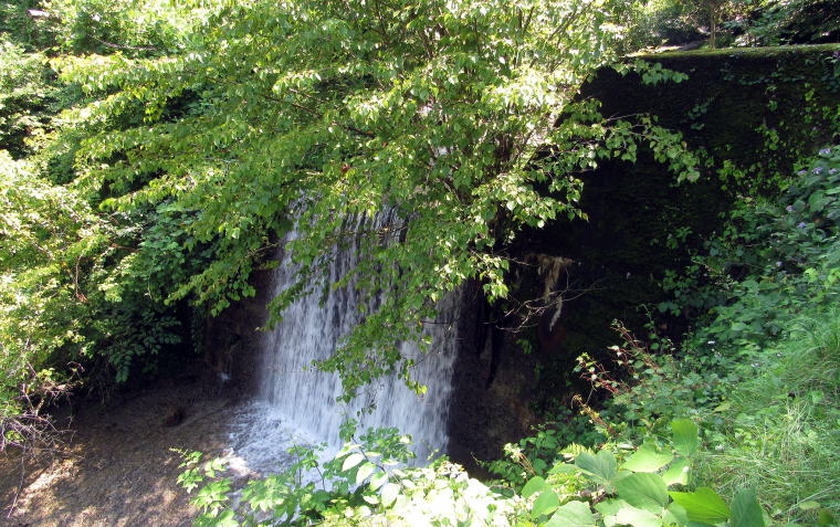 十二兼集落の北端近くの崖の下を渓流が流れています。八人石沢と呼ばれる急流です。 江戸時代には、この沢の畔を中山道が通っていました。沢の堰堤の北岸辺りには明治末まで大岩があって、道を狭めて人びとの通行を妨げていたそうです。17世紀中葉、そこで山伏たちが争いを起こして刃傷事件が発生したという記録があります。事件現場痕を探ってみましょう。 ◆街道通行をめぐる悲劇的な事件の跡◆ |