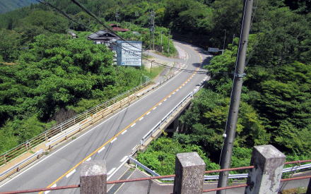 ![]() ▲崖下下側の「新屋」という屋号の家。これが十二兼村の北端。 ![]() ▲段丘崖下を往く国道19号。橋梁の下に八人石沢が流れる ![]() ▲崖縁の「花戸」という屋号の前から野尻城山を眺める。 画面中央の大杉の根元に八人石という大岩があったそうだ。 ![]() ▲崖下の八人石沢へと急坂を下る中山道。谷底を八人石沢が流れる。 ![]() ▲砂防堰堤が滝をつくる。沢の対岸の道脇に八人石があった。 ![]() ▲八人石沢と堰堤。向こう岸に大岩があった ![]() ▲堰堤滝の下谷底を清冽な水が流れる沢の底はコンクリート ![]() ▲現在は舗装された町道から国道19号に連絡している 山伏の乱闘刃傷事件の場素が十二兼の沢沿いと取り違えられたのは、山岳修験の拠点としての熊野権現十二社のある地なので、各地から山伏たちが参集のが当然と見られていたからでしょう。 |