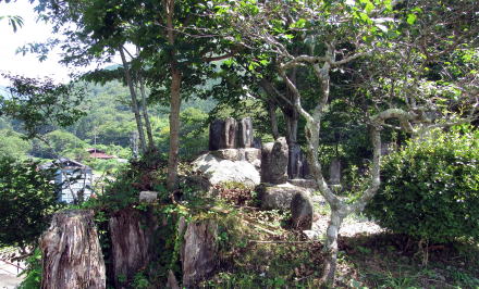 ■「はなと」は聖なる場所か■ 高台の一番北に位置するお宅は屋号が「花戸」で、そこの当主のお爺さんが精密な木工水車模型を製作しています。お爺さんの説明では、「花戸」とは高台の端(先端)を意味するそうです。