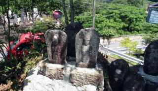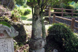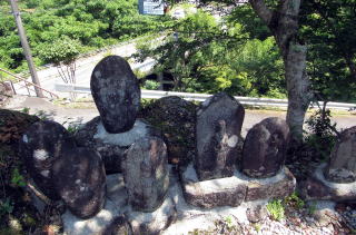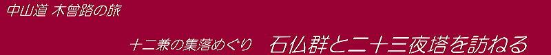 十二兼集落の北端近く、八人石沢を見おろす崖の縁は「はなと」と呼ばれていたそうです。この場所にある住戸の屋号も「花戸」です。 「はな」とは端とか先端を意味し、つまり高台の端ということです。『中山道分間延絵図』では、ここに鳥居が描かれています。往古から神聖な場所となっていたのです。今は、屋号「花戸」の脇、崖縁には墓地があり、道を挟んで東側には石仏群が並び二十三夜塔が置かれています。 ◆崖縁の石仏群と二十三夜塔を探る◆ |