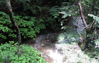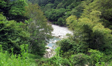 三留野から与川の上流部まで進むと、そこから根ノ上峠を越えて二反田川の源流部の谷間に出て、二反田川渓谷を野尻まで降りていくことになります。