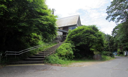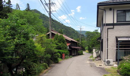 というわけで、私たちは駅から500メートルほどの道のりを歩いて、古くからある十二兼の村落をめざします。そこは野尻城山の西麓の急傾斜地の高台です。この集落の探訪記は次回に回します。