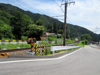 中河原峡の柿其橋から北に800メートルほど進むと、JR中央西線の十二兼駅に到着します。地形の関係でこの駅は、古くからの中心集落から400メートル以上南に離れた、谷の傾斜の少し緩やかな場所に立地しています。もっと集落に近い場所には、傾斜が険しくて鉄道も駅も建設できなかったのでしょう。