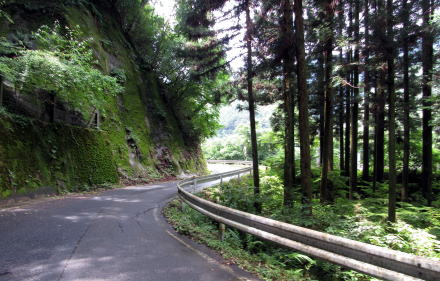 さて、藪原以南の中山道は木曾川が刻んだ深いV字峡谷のなかを川沿いに往く道です。峡谷の険しい崖や急斜面にへばりつくように通っています。
