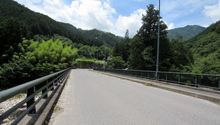 ![]() ▲柿其橋の東袂: 峡谷の上を往く高架橋梁は国道19号 ![]() ▲柿其橋の西側の眺め。右側の樹林は八剱神社の社叢 ![]() ▲柿其橋から中川原峡を見おろす ![]() ▲段丘崖の上に鳥居と石段がある ![]() ▲橋の下流部の眺め。流速が大きくなるので、岩は砕かれ小さくなり、角が丸みを帯びていく。 |