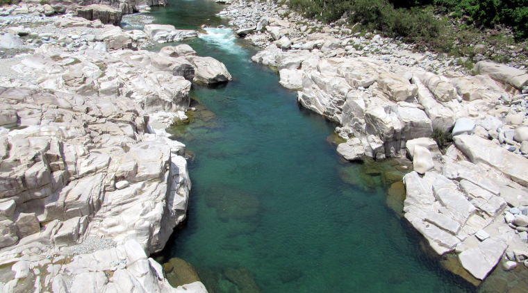 ■泥濁りがない清冽な流水■ 景観を撮影した日の前日には流域で雨が降りましたが、写真のように、ほとんど泥濁りは見られません。これが木曾川の特徴なのです。