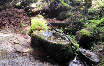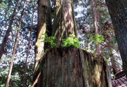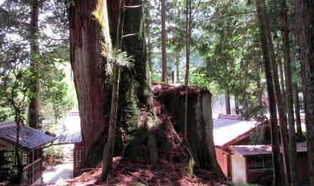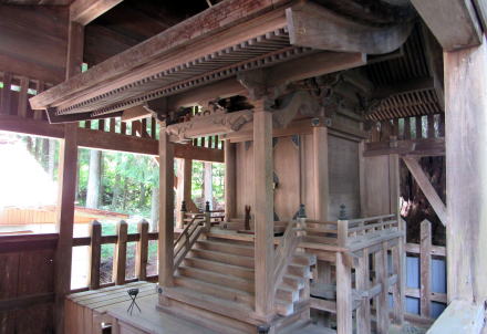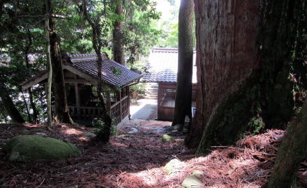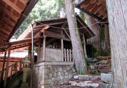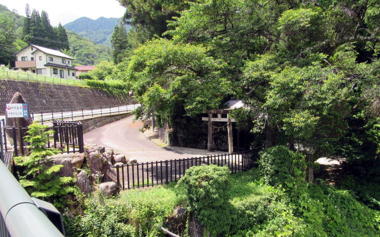 ![]() ▲山城の段郭のような岩棚の境内入り口に立つ鳥居 ![]() ▲鳥居の脇には石垣防壁のような岩が屹立している ![]() ▲拝殿の奥から階段をのぼって本殿にいたる ![]() ▲非常に美しい造りの本殿 ![]() ▲本殿の背後の大杉。4本が合体し、今は2本が生きている。 ![]() ▲社殿の背後には小高い小丘が続き樹林となっている ![]() 敗訴の小丘には杉が密生する樹林がある ![]() ▲背後の高台から社殿を見おろす ![]() ▲樹林の奥の沢から引いた御神水と手水台 『南木曽町誌』によると、ここは江戸時代には木曾川の渡し場だったことから、戸場と呼ばれていました。そして、八剱神社はかつて「劔大明神」という社号だったそうです。明治前期までは対岸の(十二兼村の)中川原立場跡の傍らの岩棚にも劔大明神があって、山神社と合祀されていたようです。ところが、この神社は鉄道トンネル工事にさいして移され、やがて十二兼の熊野社に合祀されました。今、熊野社の境内には八剱神社の碑があります。 木曾川を挟んで向かい合っていた2つの劔大明神は、1対でひとつの神社となっていて、戸場の社の御神体が「剣の刀身」で、対岸の社の御神体が「鞘」がだったのだとか。まさに劔を祀る神社だったのです。 南木曽町のこの一帯は「読書」という不思議な地名ですが、明治時代に与川村と三留野村と柿其村が合併したさいに、それぞれの読み仮名の頭文字をとって「よみかき」村としたからだそうです。 |