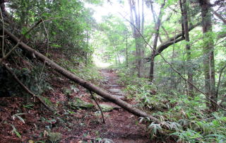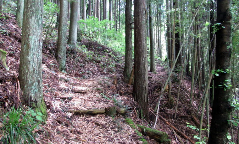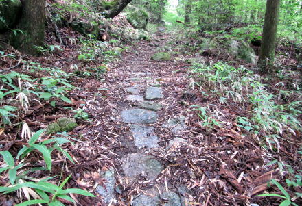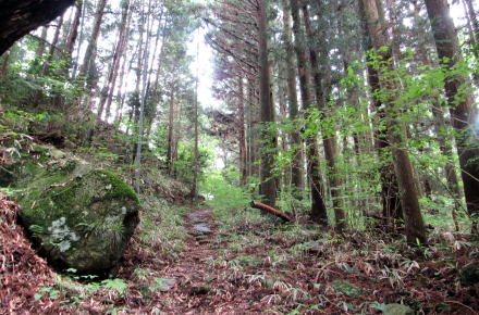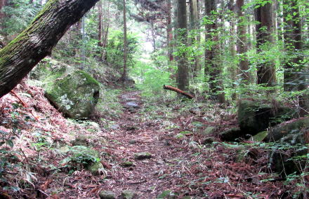 ![]() 与川道のほとんどはこのような杣道だったらしい。ここは、坂本平の近くの山林を往く小径。 木曾谷を往く道は縄文時代からあったといいます。木曾川の左岸にも右岸にも谷や尾根を通る小径があったのです。そういう杣道が基になって、奈良時代には何本もの古道がつくられ、そのうちのいくつかは東山道の脇道にもなったといわれています。これから探訪する与川道は、三留野から与川峡谷を源流まで遡り、そこからさらに伊奈川の支流浦川渓谷に分け入り、伊奈川との合流点から橋場に連絡する経路です。 |