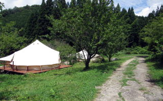 今はここにキャンプ場とアウトドア・レジャーのための宿泊施設があります。利用者には欧米など外国からの観光客が多いようです。旧中山道歩きを楽しむインバウンド観光客には有名な宿泊拠点だそうです。