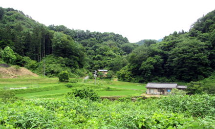 小野川平はかなり広い谷間で平坦な地形です。それゆえ、今でも集落には多くの住居が残っています。下山沢を越えてきた道路はこの集落を通ります。