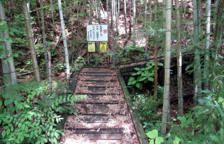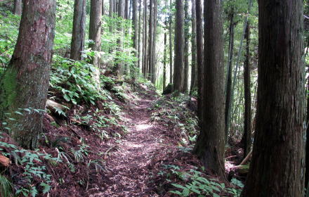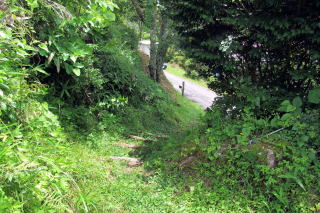 ![]() ▲江戸時代、三留野村と与川村との境界線だった正善沢 ![]() ▲正善沢:堰堤によって落差による土石流を防いでいる ![]() ▲橋の上から清冽な水が流れる渓谷の底を見る ![]() ▲送電等の方から叢林草原を抜けて杉林に入ってくるのが旧街道 ![]() ▲正善沢に向かって下っている谷斜面続く杉林のなかを往く ![]() ▲杉林が途切れ旧街道は舗装道路のヘアピンカーヴの先端に連絡 ![]() ▲与川の支流の沢を越える橋を渡る。赤い屋根の家に注目! ![]() ▲沢の渓谷と橋を振り返ると、ここには集落があったらしい ![]() ▲道標では舗装道路から外れて段丘上に登っていく道が与川道だ ![]() ▲段差をのぼると本棟造りの古民家がある。無住かもしれない。 ![]() ▲針葉樹林を抜ける、人ひとりだけが通れるような狭い幅の杣道 ![]() ▲細道は尾根丘を横切って舗装道路に合流する。合流点の階段道。 ![]() ▲舗装道路は深い針葉樹林のなかを北東に進む この道の先で舗装道路は東に迂回して下山沢を越えることになるが、与川道はほぼ直進して谷底に降りて沢を渡り、樹林帯を抜けて坂をのぼり尾根を越えて小野川平の集落に入る道だったと推定される。 下山沢は高曽根山の尾根と南木曽岳の尾根の間の谷間を流れている沢だ。 ![]() ▲下山沢のの渓谷に降りていく小径が与川道だった ![]() ▲この杉叢林の向こうは下山沢の谷間だ ![]() ▲今はこの雄報道の端を渡って沢を越えることになる ![]() ▲小野川平の集落の様子:今でも多くの住戸が残っている ![]() ▲高道の下から来る細道が与川道だという ![]() ▲高曽根山の東尾根を回り込んで小野川平の集落に出てきた ![]() ▲街道は、小野川を渡る橋にいたる。 与川の増水氾濫を考えると、往古の脇街道も、与川を渡らずに、目前の丘を左(北)にのぼっていく経路があったと考えられる。 ![]() ▲与川を越える橋。左に往くと、与川沿いに木曾川に出て与川発電所にいたる。向かいの丘の上には古典庵跡がある 。 私たちの探索旅は、右(北東)に道を取ることになる。 ![]() ▲与川の本流。渓谷段丘上(中央)の道は坂本平からの舗装道路 ![]() ▲須合平の集落と与川を渡る橋。ここからは左岸の道。 ![]() ▲棚田の畔縁に道標があって、この草道が砥川道遺構だ ![]() ▲沢渓谷の縁を往く街道遺構 ![]() ▲竹林 ![]() ![]() |