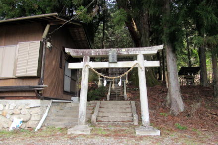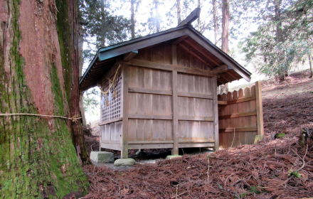江戸時代の中山道を往く旅人は、道の傍らに祀られたこの神社に立ち寄り、旅の無事を祈ったのかもしれません。中山道は、この先で少し下っていく本道――痕跡は鉄道に下に埋もれた――と、山腹をのぼる脇道に分かれていたと見られます。