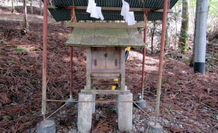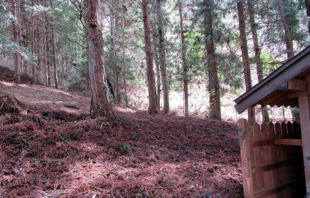 ![]() ▲国道から右に分岐するのが山裾谷間の上郷集落にのぼる道 ![]() ▲神明社の参道に向かうトンネル。背後に見えるのが鎮守の杜。 ![]() ▲神社の境内にのぼる石段。旧中山道はこの段丘上を往ったか ![]() ▲石製の大鳥居。左脇は社務所だろう。 ![]() ▲巨大な大杉に脇侍されるように、奥に社殿がある ![]() ▲小さな社殿で、拝殿と本殿が一体化している ![]() ▲境内摂社の祠。津島社などが祀られている。 ![]() ▲社殿の背後の斜面は整地してあるが、何もない ![]() ▲解題はそのまま山林に溶け込んでいる ![]() ▲境内はこんな急斜面の壇上にある |