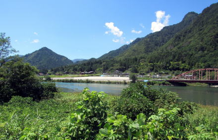耕作地はというと、城山の山裾から木曾川へと続く斜面には段々畑や棚田が連なっています。斜面の傾斜がきついので、田畑の形は等高線に沿って細長い帯状になっています。