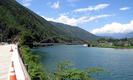 明治時代になると、江戸時代の旧街道は、馬車や荷車が安全に通るように整備され、屈曲や起伏が激しい道を迂回する新しい街道が建設されました。野尻宿の街並みを抜けてきた中山道は、下在郷の一里塚の辺りから阿寺渓谷入り口辺りまで、ひとつ上の段丘を往く直線的な経路の「新中山道」に置き換えられました。現在の県道261号です。