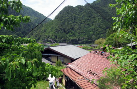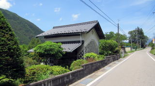 とはいえ、城山から木曾川に下っていく城山尾根斜面の段丘上に造成された敷地なので、奥行きは浅いので、家屋と道路との間に広い前庭はありません。概して木曾谷の集落は狭い谷間にあって平坦地がわずかなので、各住戸の庭の面積がきわめて小さいか、あるいは庭がほとんどないという特徴がきわだっています。ただでさえ限られた敷地を庭に回すことができないということなのでしょう。