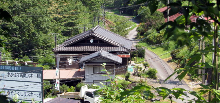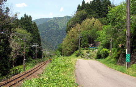 ![]() ▲「新屋」の住宅。今回の旅では、ここから下在郷まで歩く。 ![]() ▲旧中山道遺構の小径。100メートル先で旧野尻村となる ![]() ▲ここから旧野尻村(現大桑村)。左手、段丘の下は鉄道。 ![]() ▲往時、この先で右手に折れて勝井坂をのぼっていったという ![]() ▲沢を越えた踏切の手前で来た小径を振り返る ![]() ▲この踏切を西に渡ると阿寺渓谷への道路がある ![]() ▲ここから下在郷集落の家並みが始まる 右の写真の山の麓まで道路を下ると阿寺橋と阿寺渓谷入り口にいたる。この道路の左手の谷の下は、読書ダムとダム湖状の木曾川。 下在郷の集落と阿寺橋、読書ダム湖などをめぐる旅については、このあとの記事で報告します。 |