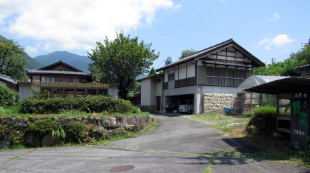 ![]() ▲十二兼集落の「新屋」という屋号の住宅。右脇(東脇)を往くのが旧中山道。江戸時代には ここまでが柿其村十二兼だった。現在は、その背後の家も南木曽町(旧読書村)に含まれる。 |