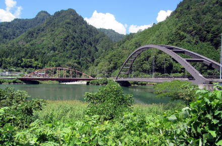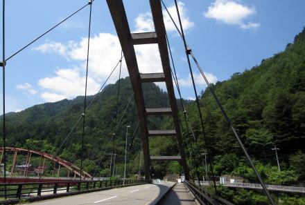 明治時代になると、江戸時代の旧街道は、馬車や荷車が安全に通るように整備され、屈曲や起伏が激しい道を迂回する新しい街道が建設されました。野尻宿の街並みを抜けてきた中山道は、下在郷の一里塚の辺りから阿寺渓谷入り口辺りまで、ひとつ上の段丘を往く直線的な経路の「新中山道」に置き換えられました。現在の県道261号です。