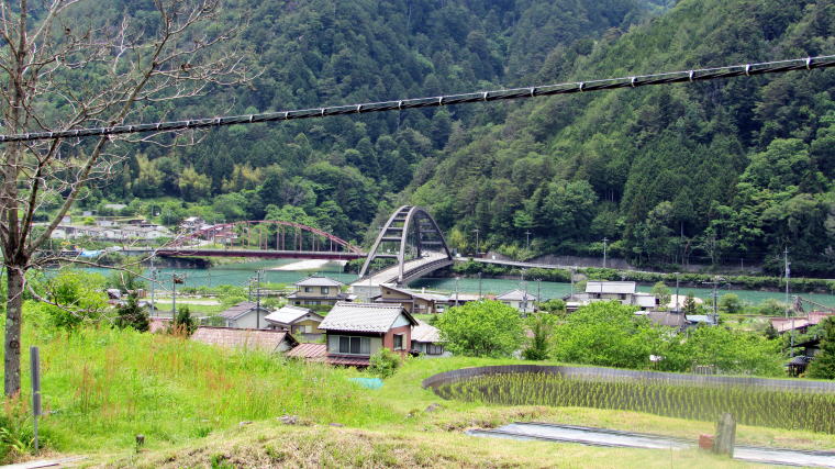 ![]() ▲下在郷の旧中山道から木曾川と阿寺橋を眺望する |