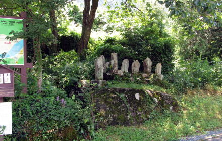 ![]() ▲右に分岐する小径が旧中山道で、広い自動車道は阿寺橋に向かう ![]() ▲さあ、今日の旅が始まる ![]() ▲旧街道は家々の玄関先を通っていく ![]() ▲扇状地なので街道脇の湧き水や沢が多く、水場が池となっている ![]() ▲荒廃した農家の納屋跡や畜舎跡の脇を進む ![]() ▲農家の大きな主屋と土蔵・前庭が街道で分断されている ![]() ▲旧中山道は広壮な古民家の軒下・軒先を取っていく ![]() ▲三叉路を北に、小さな坂をのぼって進むのが旧街道 ![]() ▲街道の東脇にある妻神社: 巨石の上に石神が祀ってある ![]() ▲自然石に社号が刻み込まれている ![]() ▲妻神社の北隣には石仏群。7基のうち5基が馬頭観音。 江戸時代後期から運搬や農耕で使役される馬が斃死したときに埋葬する場所が集落ごとにあった。馬捨て場とか馬塚と呼ばれる場所だ。そういう場所には、死んだ馬など畜獣を慰霊するために石塔や馬頭観音が祀られることになったのだという。 一方、村境や村人が往来し集まる場所にも石仏や道祖神などが建てられたという。また、街道沿いには1丁ごとの道程標として馬頭観音などの石仏が置かれるようになったと見られている。 馬は人びとに身近な存在だった。おそらく野尻の街では年ごとに馬市が開かれて、近郷近在から飼育された馬が持ち寄られて競りによる売買がおこなわれていただろう。 ![]() ▲小径は蛇抜け沢に近づいていくと、しだいに上り坂になる。 ![]() ▲蛇抜け沢の谷を渡る街道。上は谷終えのJR中央西線の橋梁 ![]() ▲蛇抜け沢沿いに丘陵を北東にのぼる坂道(旧中山道) ![]() ▲旧街道沿いに数軒の古民家からなる集落がある ![]() ▲この古民家の前はかつて崖下に蛇抜け沢が流れる渓谷だった。土石流の被害を受けにくい岩壁の上なので、家が建ち、その前で中山道は沢を越えた。 ![]() ▲蛇抜け沢を越えると、街道は斜面を降り標高を下げる ![]() ▲この坂をのぼると下在郷の一里塚跡にいたる ![]() ▲一里塚跡の碑: この石標が、ここに一里塚があったことを示している。往時、この地点の中山道の道幅はせいぜい1間で、現在の舗装道路の半分ほどだった。その道の両脇に直径5メートルで高さが2メートル余りの塚山があって、そこに松や榎が植えられていた。 |