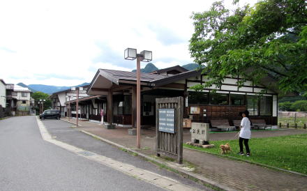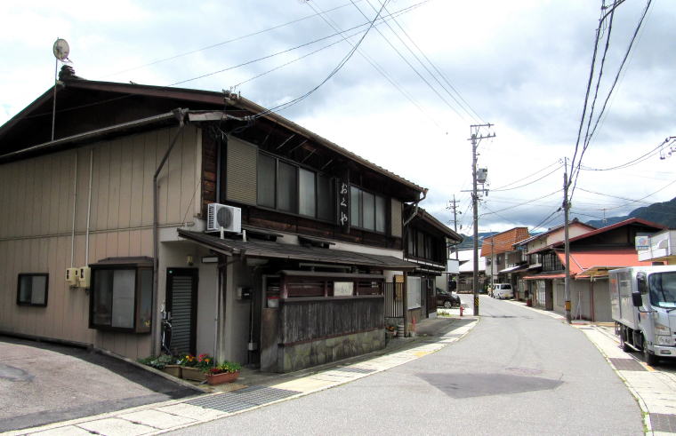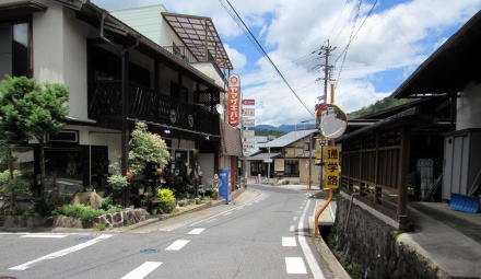 野尻駅前には駅前公園や観光案内所などがあります。駅前を一巡りしたら、旧街道に出て花屋「やまろく」から東に向かいましょう。
