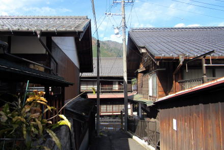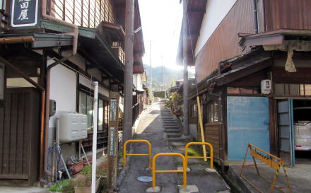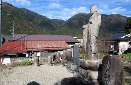 ![]() ▲庭田屋の西脇から丘にのぼる参道風の細道 ![]() ▲石仏群の前から振り返る。小径の右手が庭田屋。 ![]() ▲地蔵菩薩を囲むように並ぶ石仏群 ![]() ▲地蔵尊尾右手には歴代庵主だった尼僧たちの墓標が並ぶ ![]() ▲左手に並ぶのは、二十三夜碑と馬頭観音3基 ![]() ▲東方を望むと木曾駒ケ岳を眺望できる 妻籠宿では光徳寺の寺領山林が没収され、まず寺の堂宇の一部が学校施設として利用され、やがて牛頭天王社――神社として寺から分離独立した――下の山林が学校用地となりました。中山道の宿場街では、同じような事例が数多くありました。 |