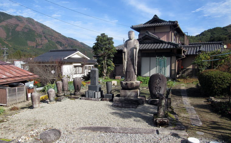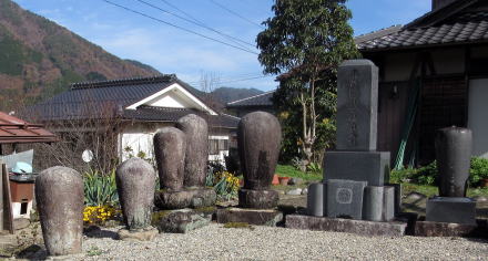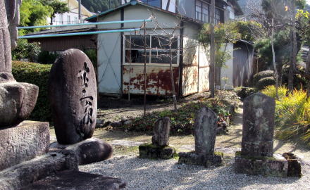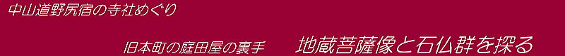 ■ここには禅庵があったらしい■ 旧中山道沿いを野尻亜紀近くまで来ると、庭田屋旅館の西脇を丘にのぼっていく小径があります。大桑小学校の校庭に向かう急坂の細道です。この小径の東脇、庭田屋の裏手に当たる高台に地蔵菩薩像を中心に石仏群が並ぶ不思議な場所があります。