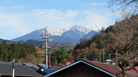 北東方向を望めば、木曾駒ケ岳の雄大な風景を眺めることができるすがすがしい場所です。丘の下には木曾川を見下ろす高台です。