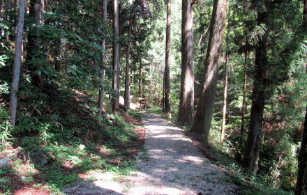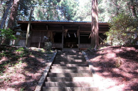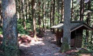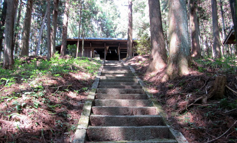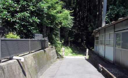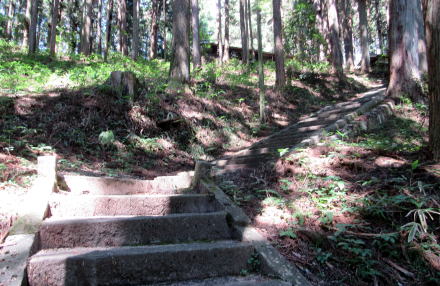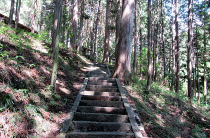 ![]() 尾根の南側の崖のような斜面をのぼる石段参道。 |