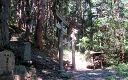上町の高札場跡から倉之坂を下っていくと、JR中央線の手前に数件の家亜が並んでいます。地籍としてはここまでは上町です。 家並み間に路地があって、尾根裾の森に導いてくれます。そこには鹿島社の大鳥居があって、 ◆広大な尾根台地の端に立つ尚武の神◆ |