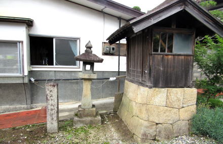 ![]() ▲上町の小さな社殿は蓋殿で、なかには2つの神殿が置かれている ![]() ▲常夜灯・石塔・祠の脇から妙覚寺への石段参道が始まる ![]() ▲上町の中央にあるカーヴの先端に祠が祀られている ![]() ▲荒田の合祀蓋殿のなかを覗くと、3つの社号札がある ![]() ▲指導の脇に常夜灯と石塔があって、上町と同じようなつくり ![]() ▲土台の石垣は昭和期に改築されたように見える これらの祠堂は、妙覚寺やその傘下にあった各神社への参詣路となっていたらしい。 |