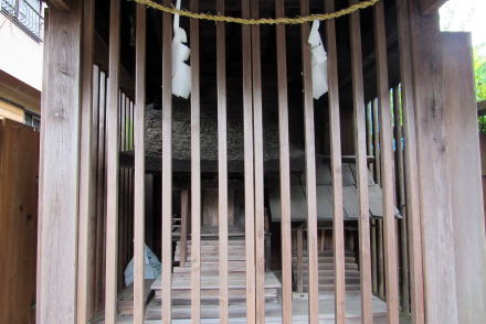 ■里宮と氏神の中間の存在か■ 中山道は信州の山峡を往く街道です。そのため、多くの宿駅の町では、住民の日常の信仰や礼拝の場所として、山中の本宮(奥宮)から分霊して町のなかに里宮あるいは仮宮を設けていました。三留野宿では東山神社の里宮が的外れに置かれ、須原宿では鹿嶋神宮の仮宮が街の中心部に祀られています。